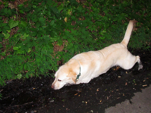 today is nacho's 7th birthday. he got a baby pool to swim in, he is going for a walk to the pond, and later he will get peanut butter flavored doggie ice cream from the hop.
