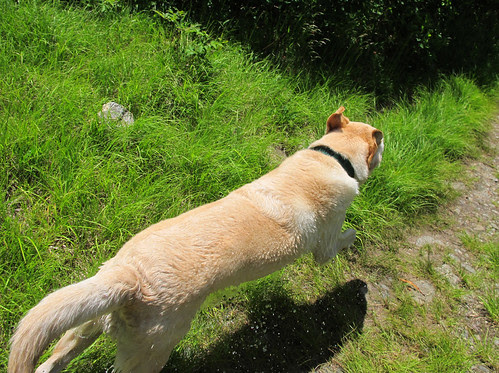 then eli solved the mystery. he went over to a 'seed' on the floor and sniffed it and looked at us. he was telling us not to worry, it was just an engorged tick the size of a grape.
